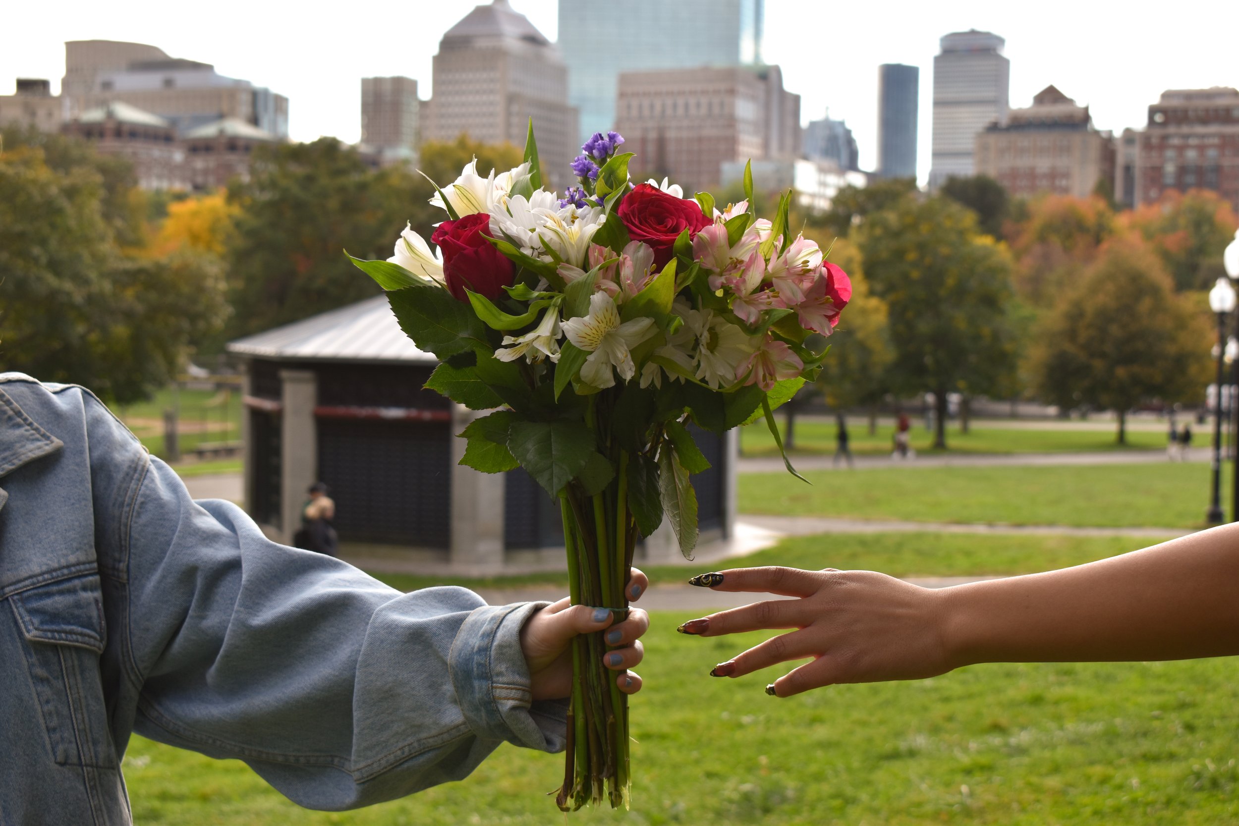 One of the more positive songs on the EP, “id pick up flowers,” discusses this ideal world with someone he loves, and about how he would pick up flowers for them. The color of the flowers against the more drab cityscape is intended to show the difference between what is and what could have been. The hand reaching out but not quite grabbing the bouquet is also meant to add to that feeling of longing, which otherwise shines through the lyrics. Many lines include yearning language like “would,” like in the lines “You would never need to” and “I’d surprise you in your living room,” both of which highlight how he wishes things could be.